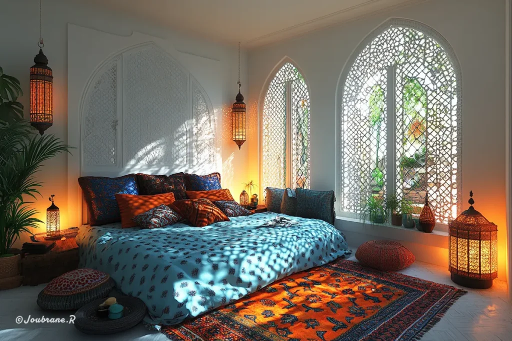 Creating a Moroccan-inspired bedroom means embracing a rich diversity of styles that vary across the different regions of Morocco. From the ornate designs of Fes to the vibrant patterns of Marrakech, and the earthy tones found in the desert, Moroccan decor reflects the unique culture and environment of each area. Whether it’s a lavish display of intricate details and luxurious furnishings or a more modest, simple aesthetic, each version of Moroccan style carries its own distinct charm.